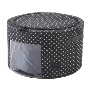 Round Storage‘Abby’ Collapsible Round Storage Box – Black with White Polka Dots